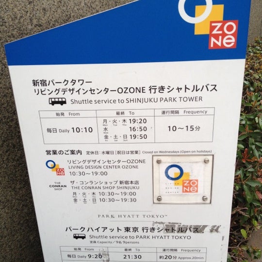 Ozone パークハイアット東京行き 無料シャトルバス乗り場 西新宿