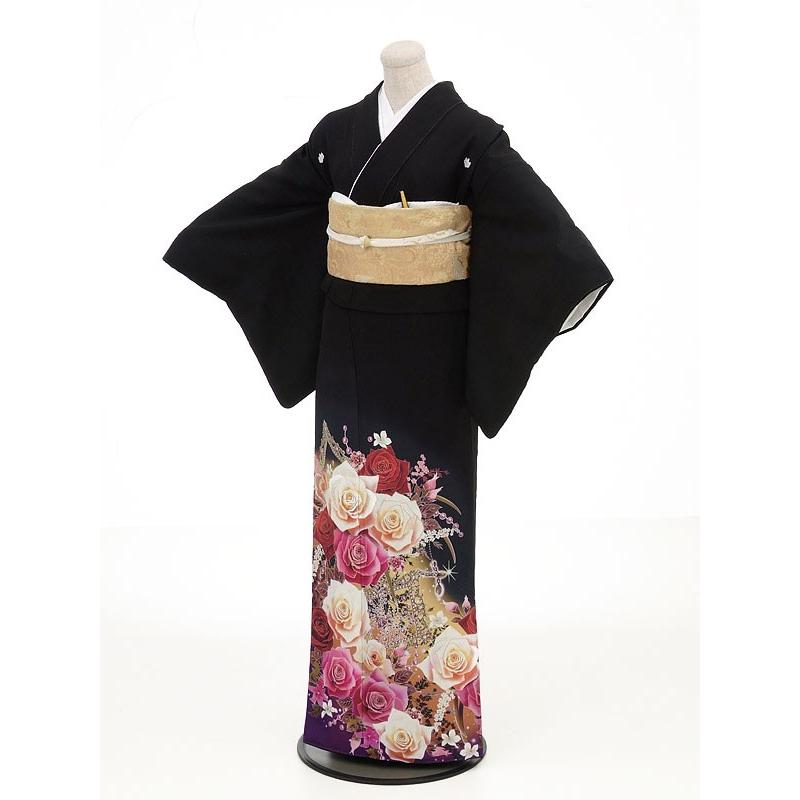 留袖レンタル2093ピンクバラ 黒留袖 レンタル 結婚式 留袖レンタル 黒