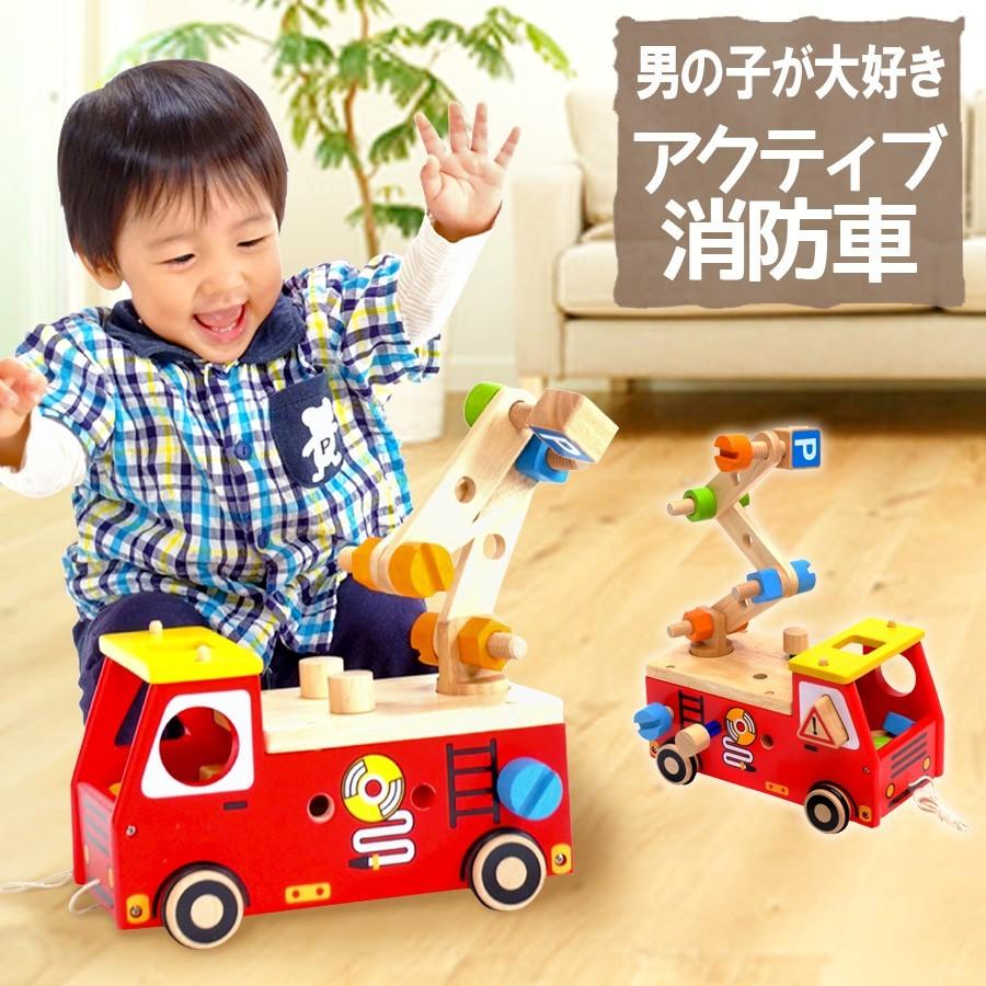 おもちゃ アクティブ消防車 知育玩具 木のおもちゃ 赤ちゃん 2歳 3歳 4