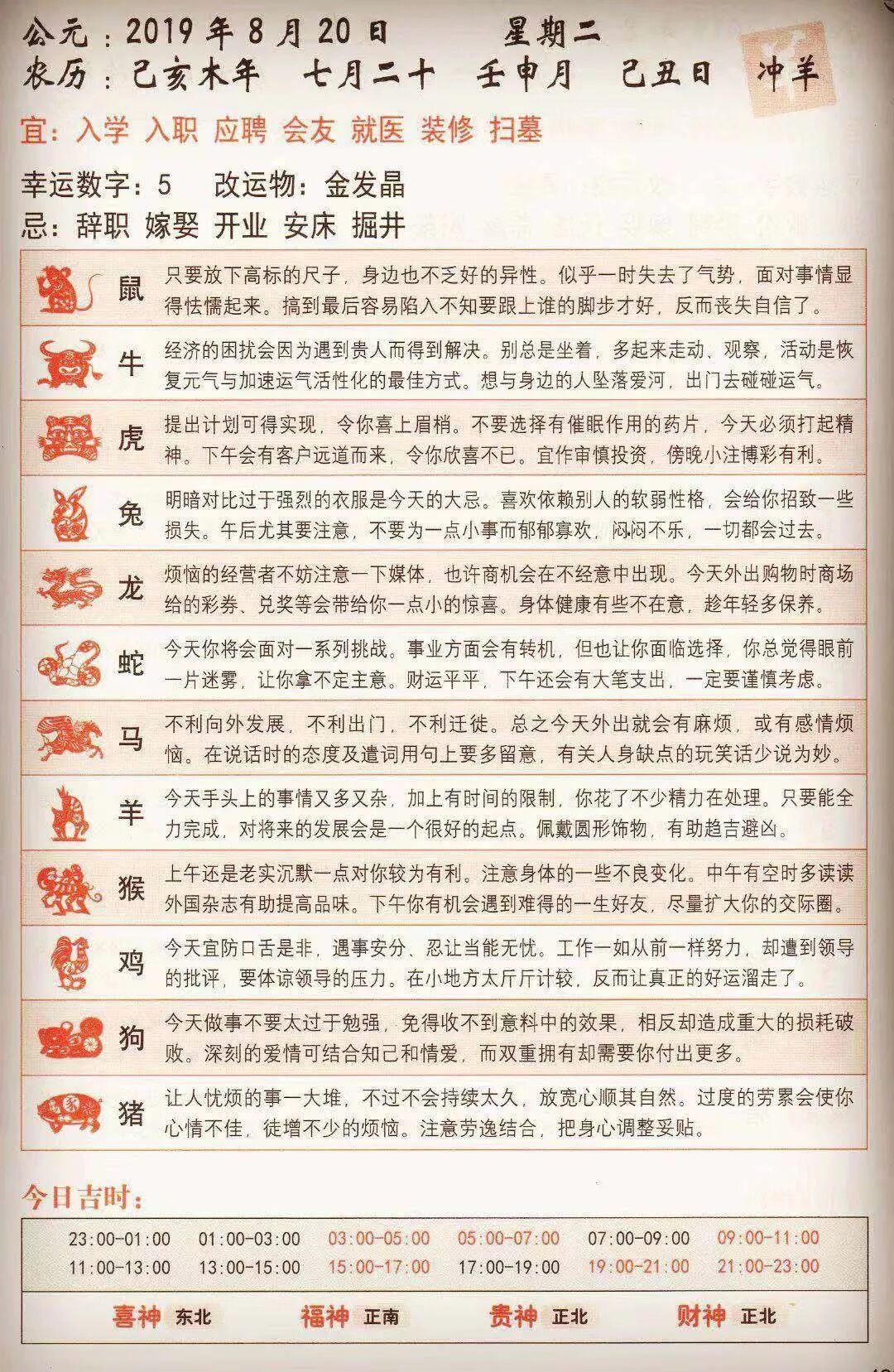 每日生肖运势宜忌 2019年8月20日 星座星座 微信公众号文章阅读 Wemp