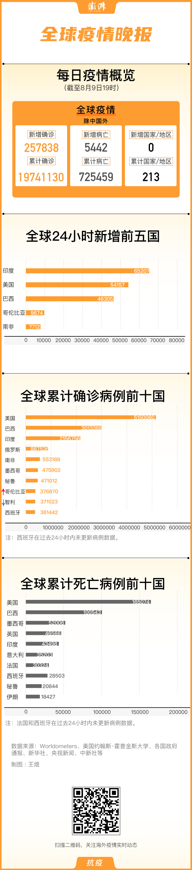 全球疫情晚报 美国每66人有1人感染新冠 巴西病亡超十万 澎湃国际
