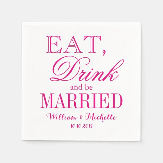 Eat Drink And Be Married Neon Pink Wedding Napkins Zazzle Com Au